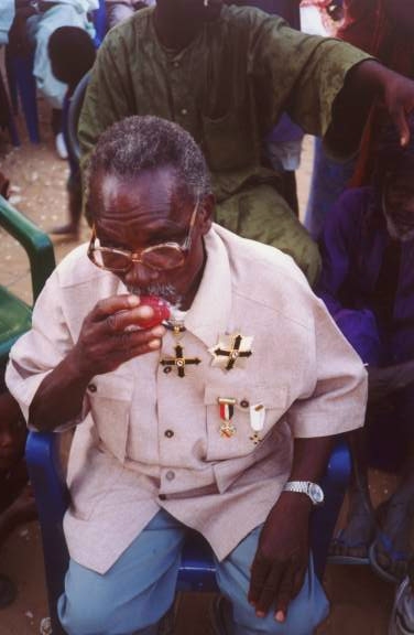 The Late Baron of Savoigne, Pierre Claver Faye Knight Grand Cross of The Most Illustrious Order of The Raven and first recipient of the St. Michael Medal enjoys an ice cream after his elevation.
